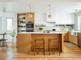 A San Francisco couple who work in the medical field bought their contemporary three-story hillside home as a place where they could relax after their busy work days. But the existing U-shaped kitchen with a generic look and a wall that separated the space from the dining room didn’t align with their…